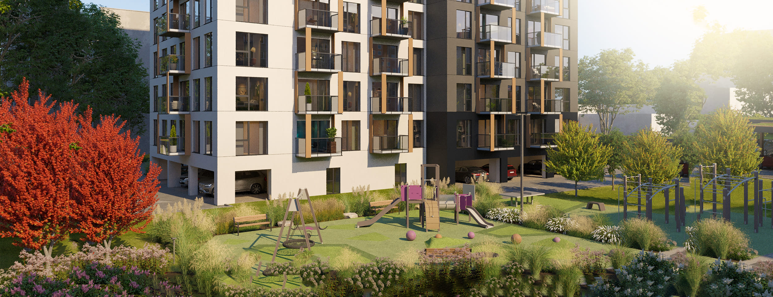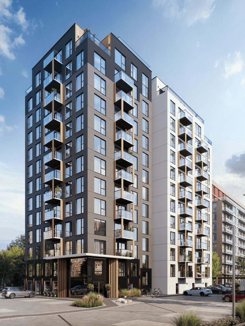 Atklājiet modernu arhitektūru, elpu aizraujošu panorāmas skatu no augšējo stāvu dzīvokļiem, segtu autostāvvietu, A+ energoefektivitātes klases dzīvokļus un eleganti veidotus vestibilus un koplietošanas telpas.